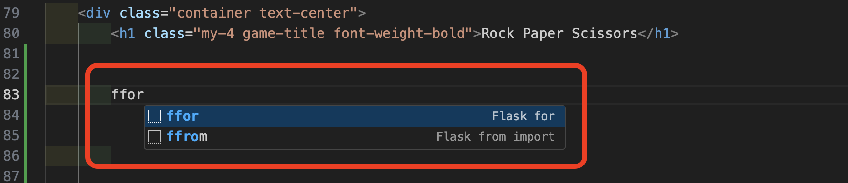 f로 시작하는 flask code snippets이 자동으로 불러와지지 않았다. vscode에서는 되는데..