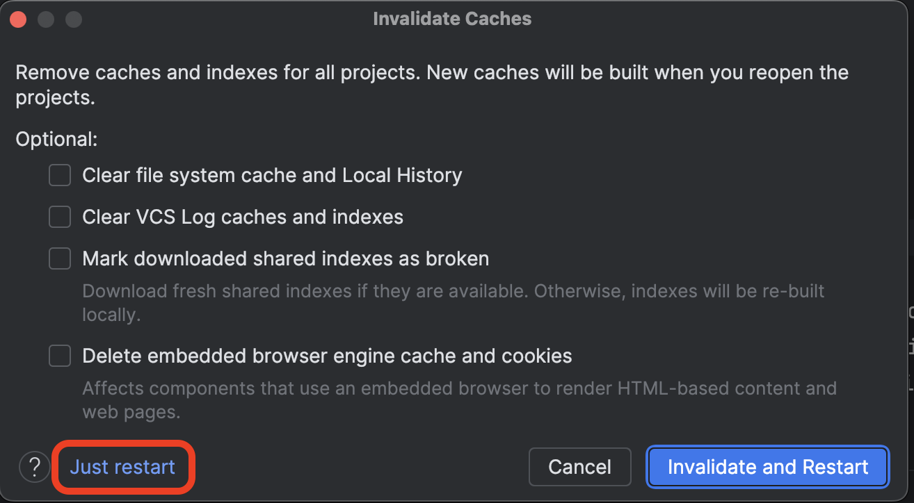 사실 난 Invalidate and Restart를 클릭하긴 했는데ㅎㅎ 아무튼 이렇게 하면 끝!