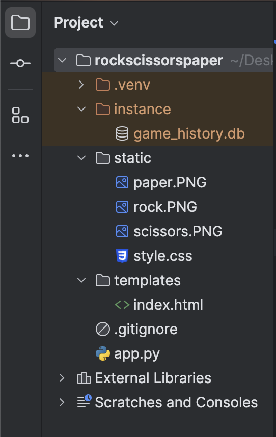 난 웹페이지에 가위, 바위, 보를 이미지를 삽입해줬기 때문에 static file 안에 paper.png, rock.png, scissors.png 파일이 있다.
