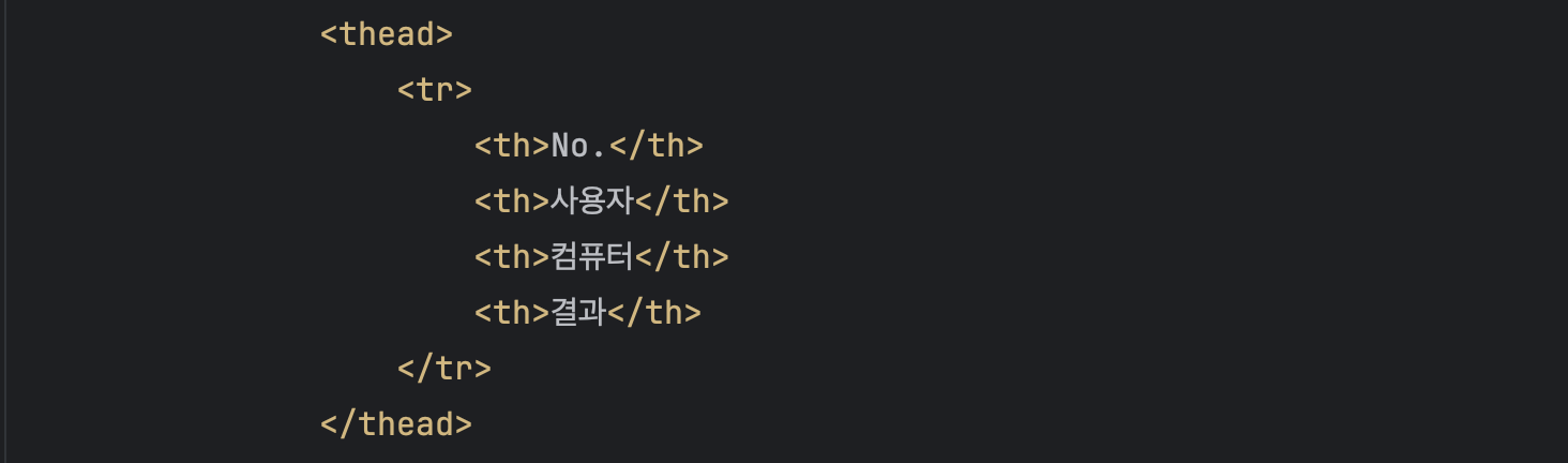 (웹페이지 표에서 No., 사용자, 컴퓨터, 결과 로 보여지는 건 html파일에서 th태그 값을 내가 그렇게 지정해줬기 때문이다.)
