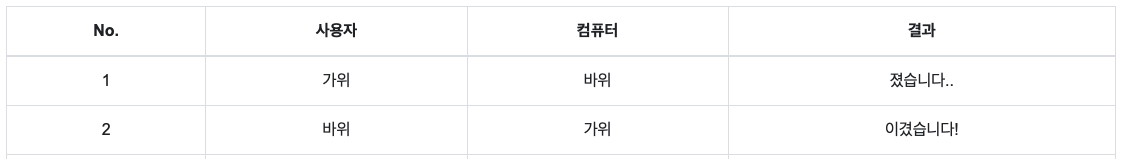id, player_choice, computer_choice, results는 웹페이지에서 구현될 표의 컬럼 값을 의마한다.