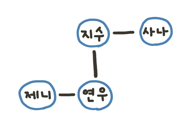 제니, 연우, 지수, 사나는 각각 노드