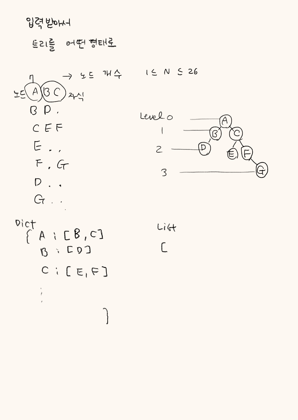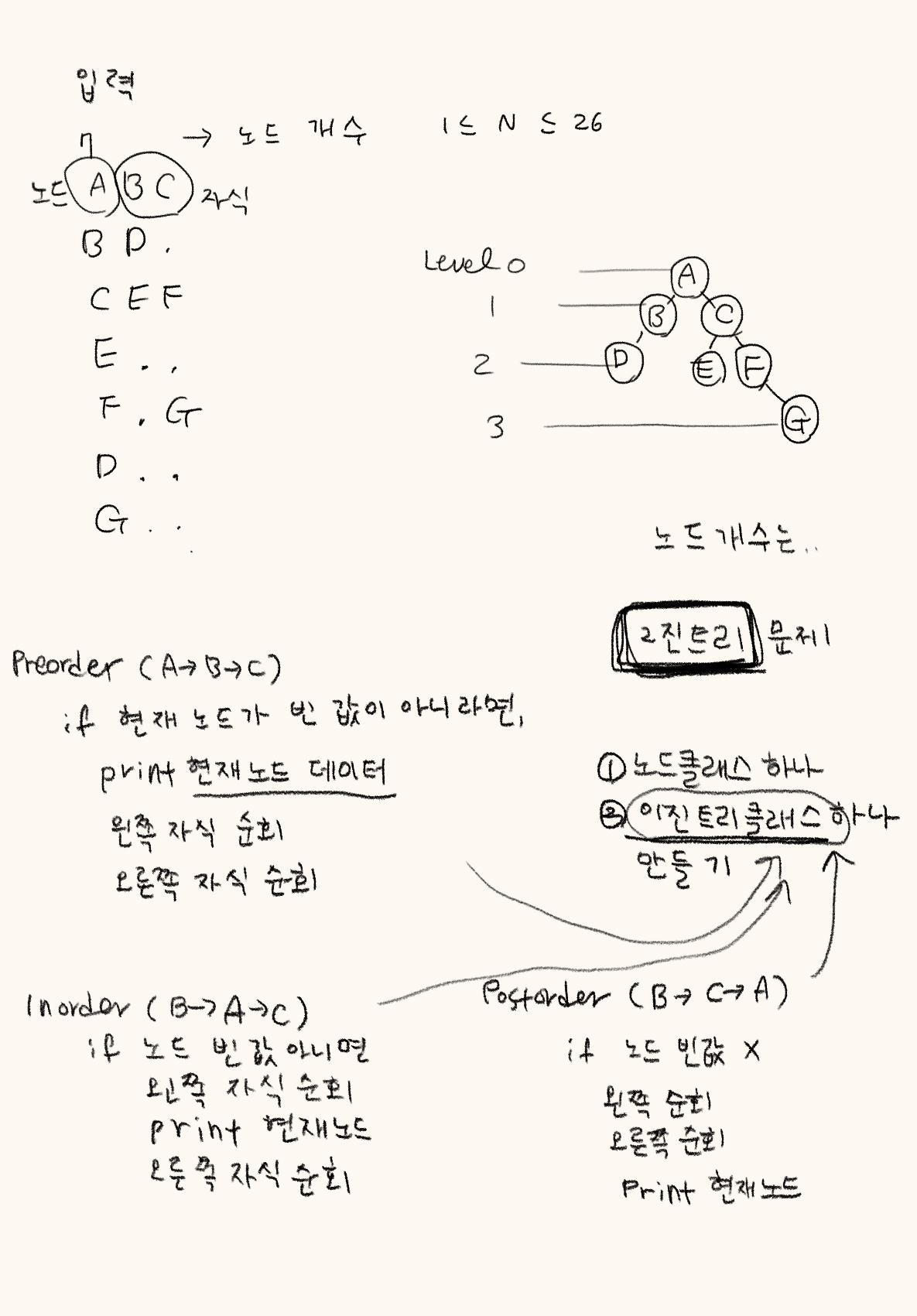 예를 들어 위와 같은 이진 트리가 입력되면,