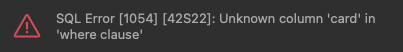 테이블 명, 컬럼명 오타 수정해주고 where절에 작은 따옴표 ' ' 넣어주면 된다.