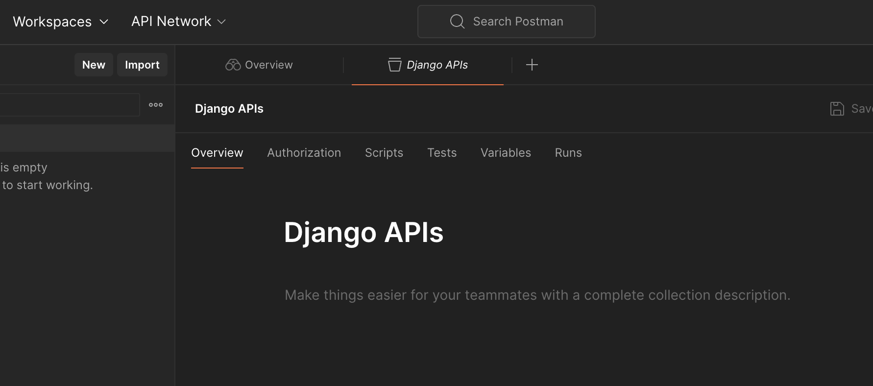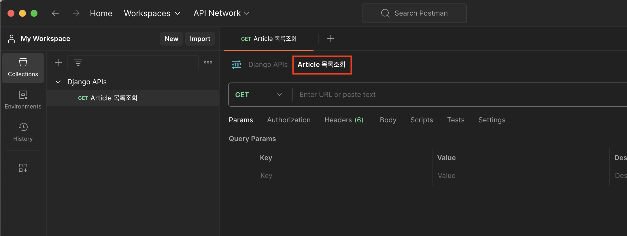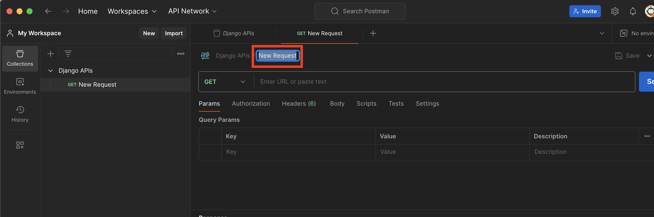 3. Collection 이름 지정 ('Django APIs')