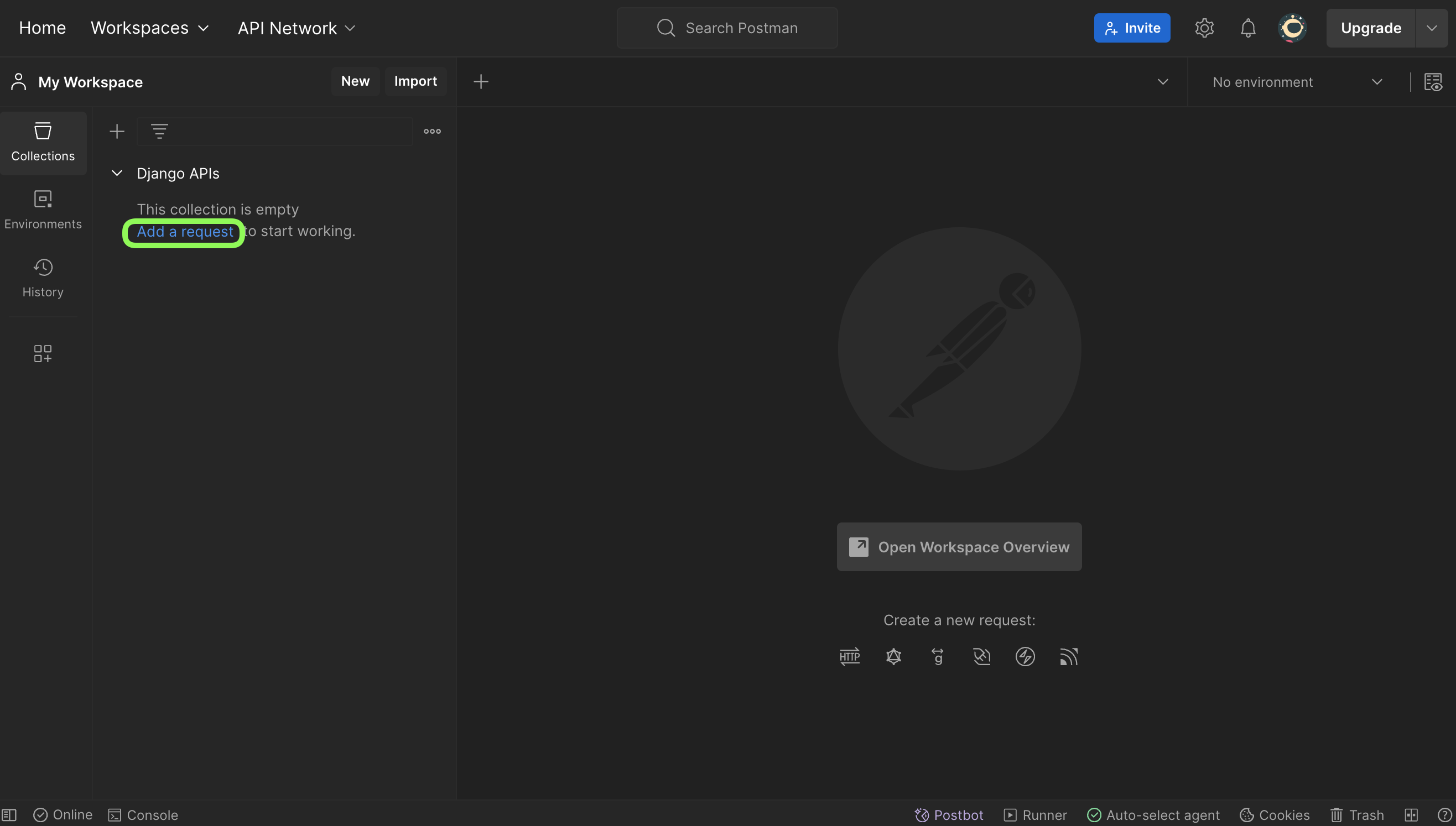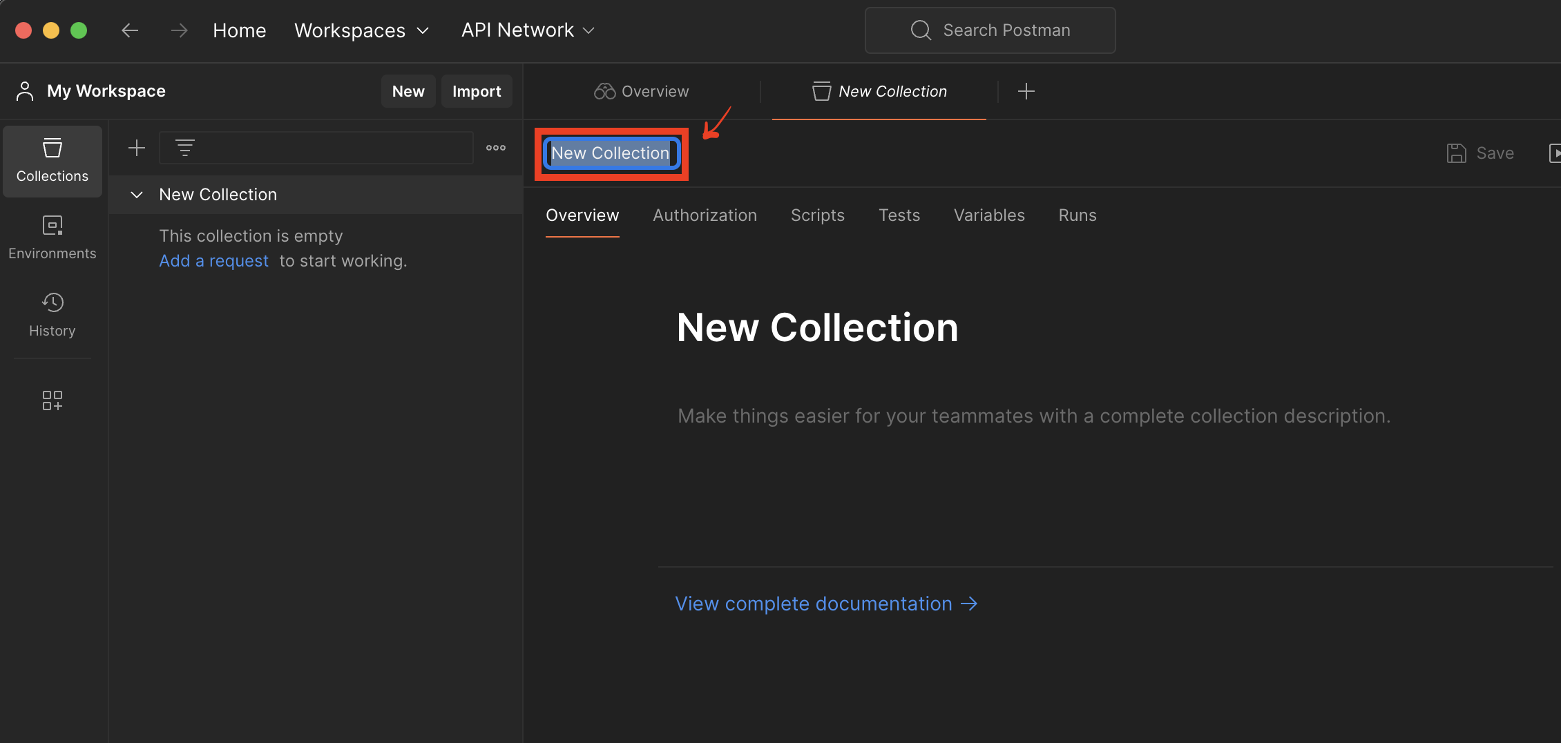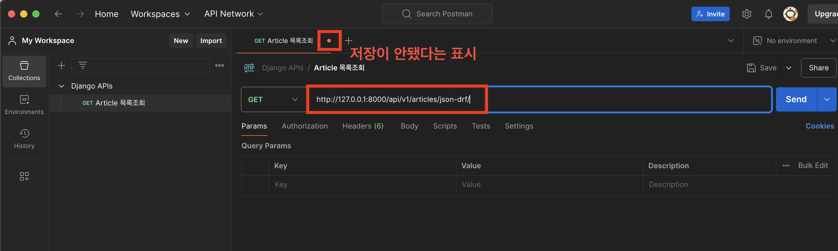 3. Collection 이름 지정 ('Django APIs')