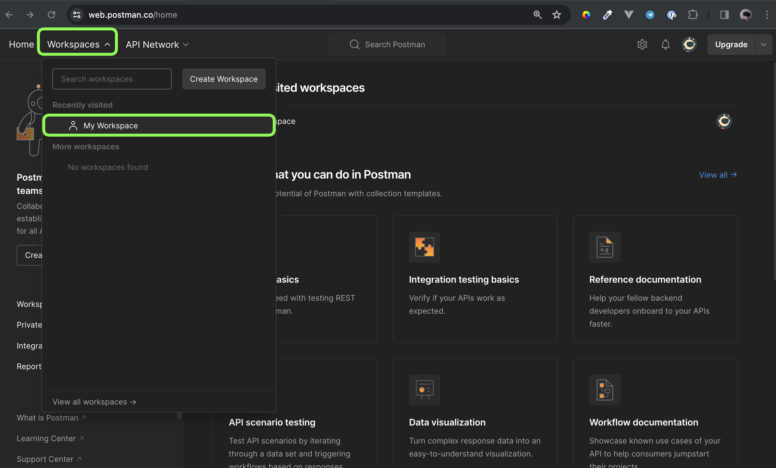 1. Workspaces 클릭 → My Workspace 클릭