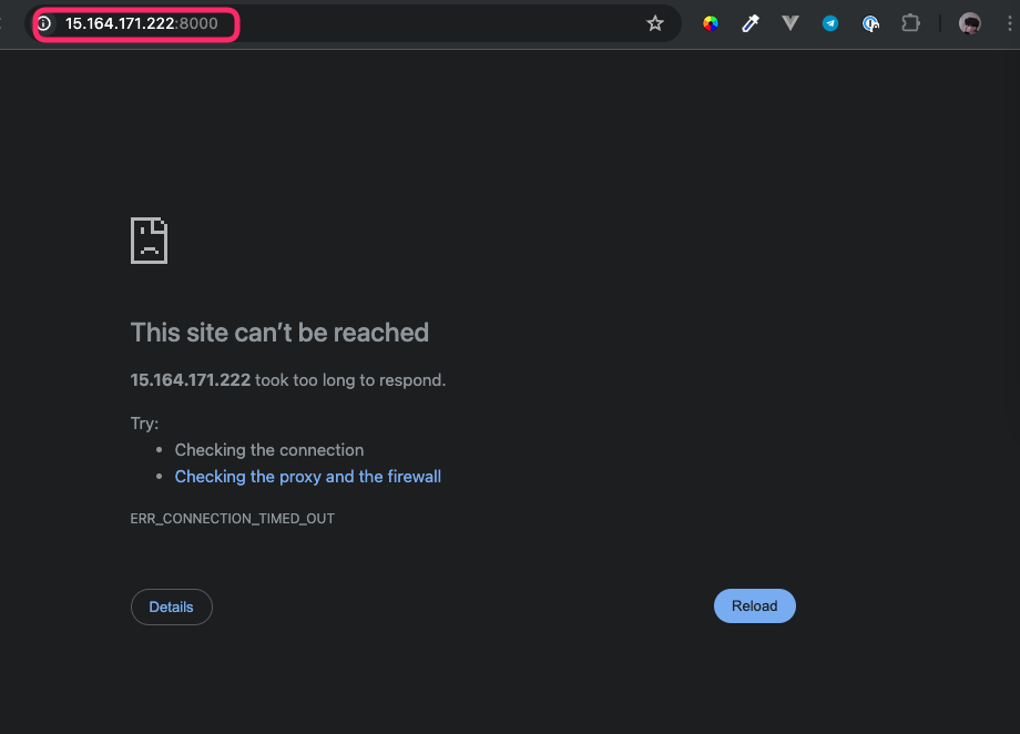 안 되는 이유는 EC2에서 8000번 포트로의 접속을 허용해주지 않았기 때문이다. 포트 열어주러 가보자👌