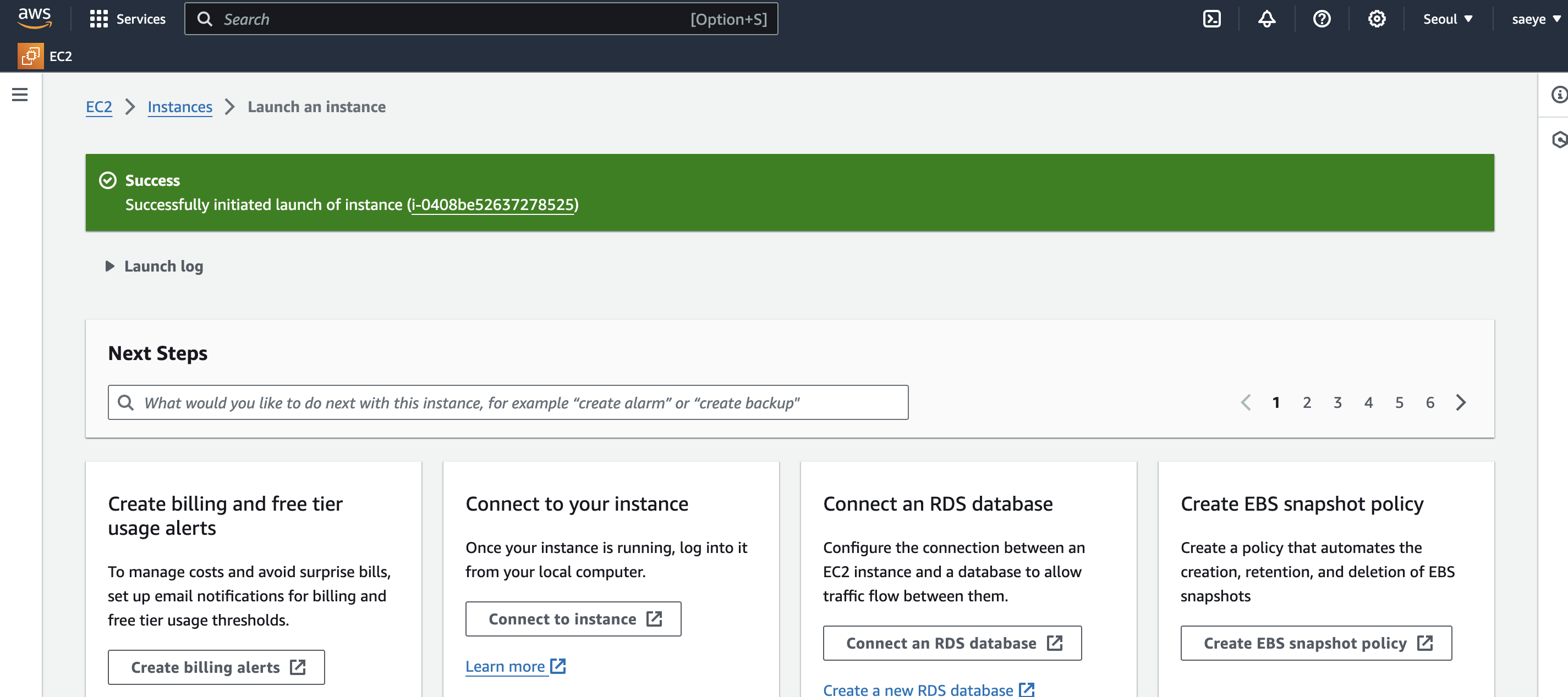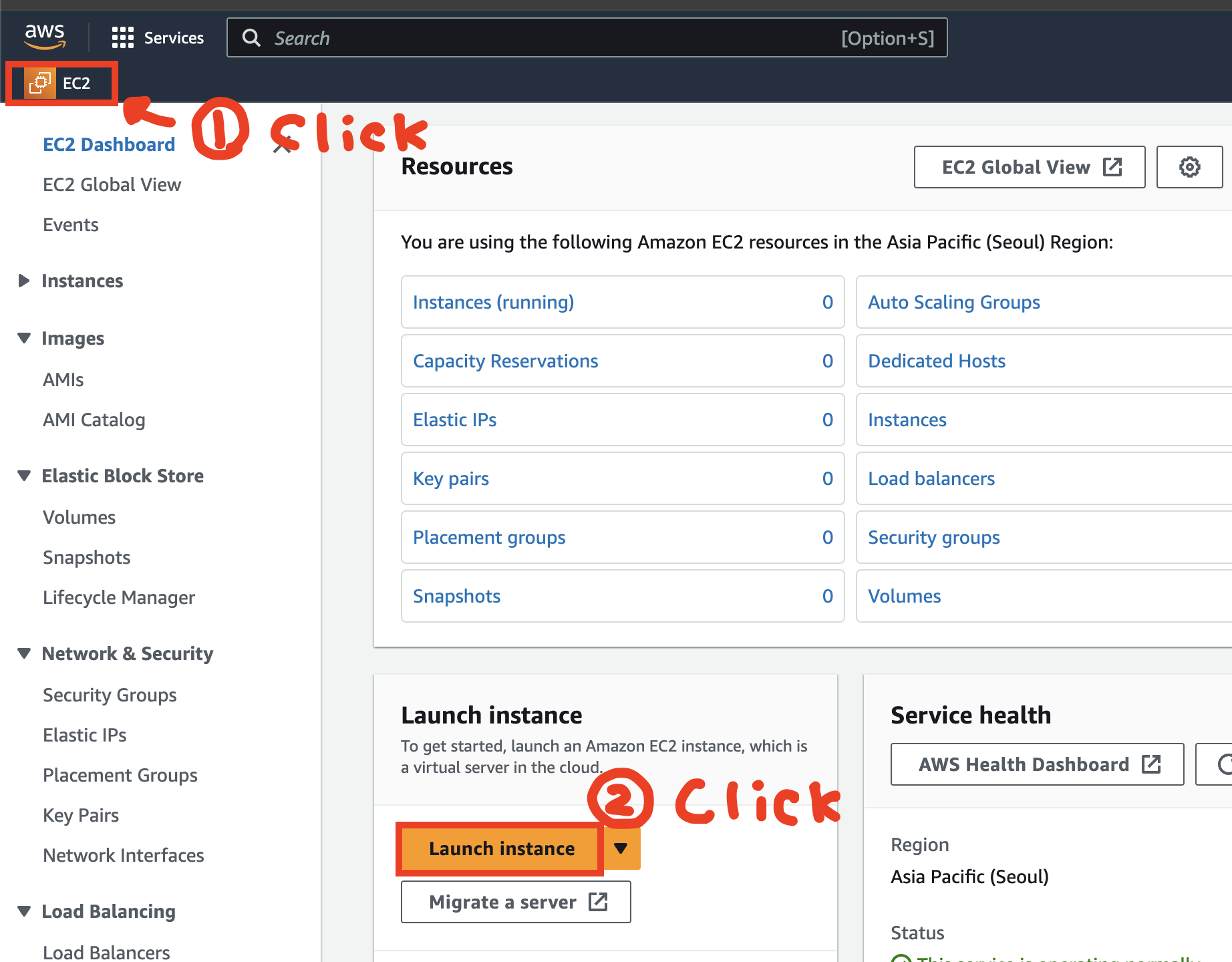 EC2 클릭하고 → 아래 Launch instance 클릭