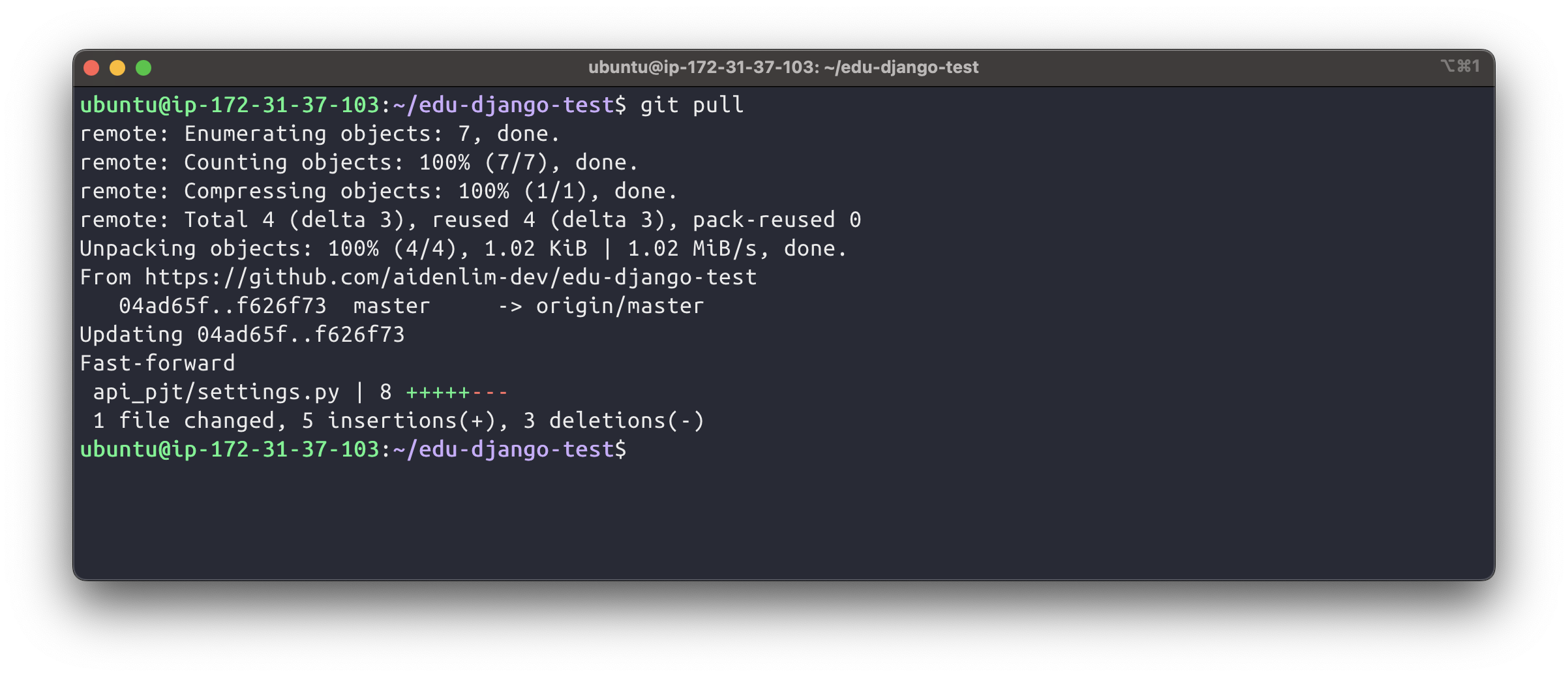 코드 수정했으니까, 다시 push를 하고, EC2로 가서 다시 pull을 받는다.