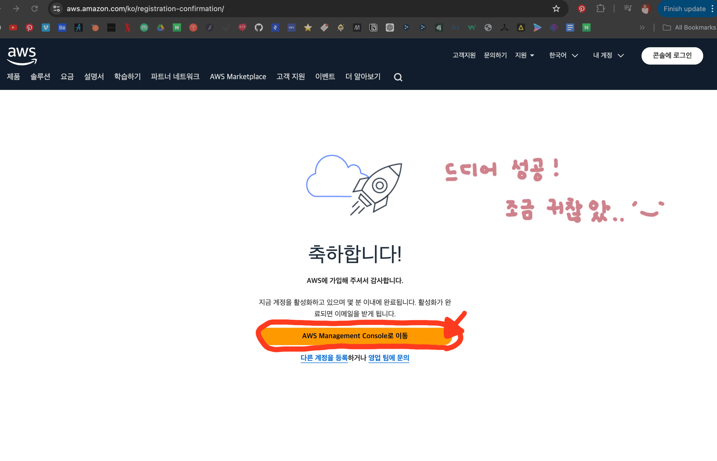 드디어 성공😊 → AWS Management Console로 이동