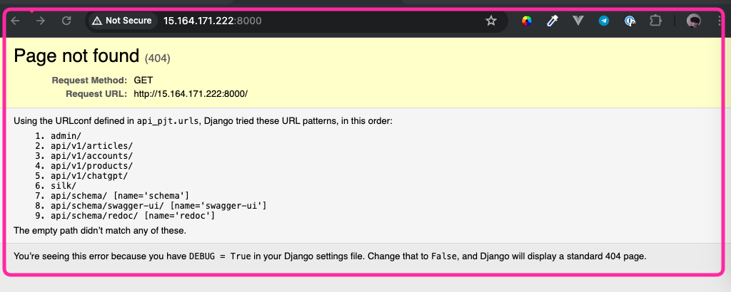 settings.py의 allowd_hosts 항목에 EC2 IP 주소를 적어줘야 한다🫠