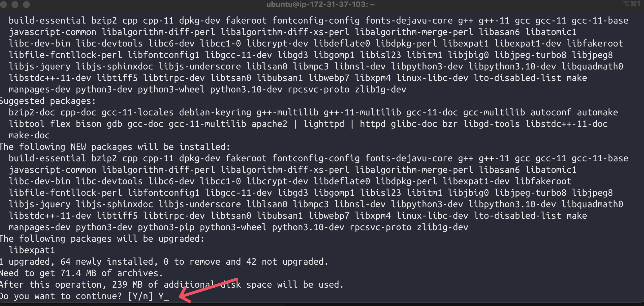 sudo apt-get install build-essential libpq-dev -y↑ requirements 설치시 필요할 수 있는 시스템 패키지 사전 설치 (중간에 나오는 창은 모두 OK로 진행하면 된다.👌)