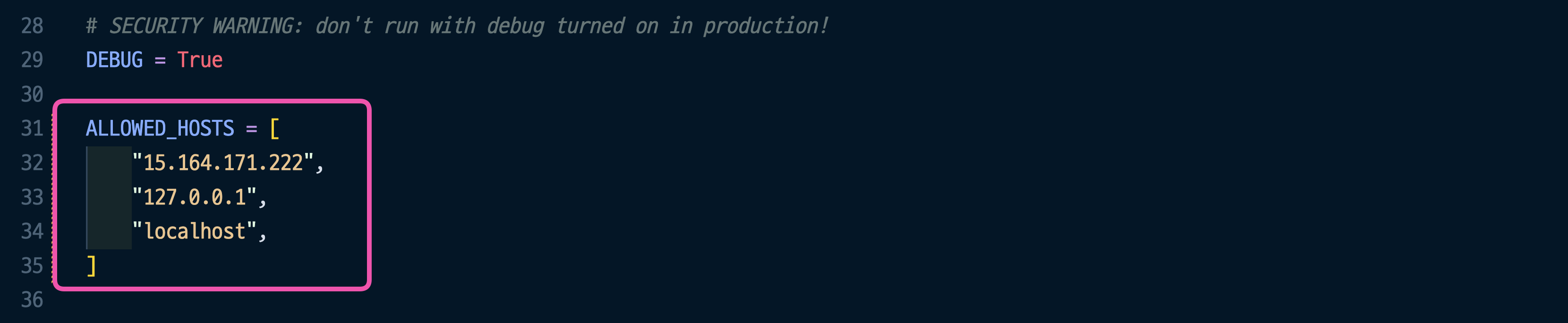 - Django는 프로젝트가 실행되는 호스트를 등록하는 보안기능을 제공한다.