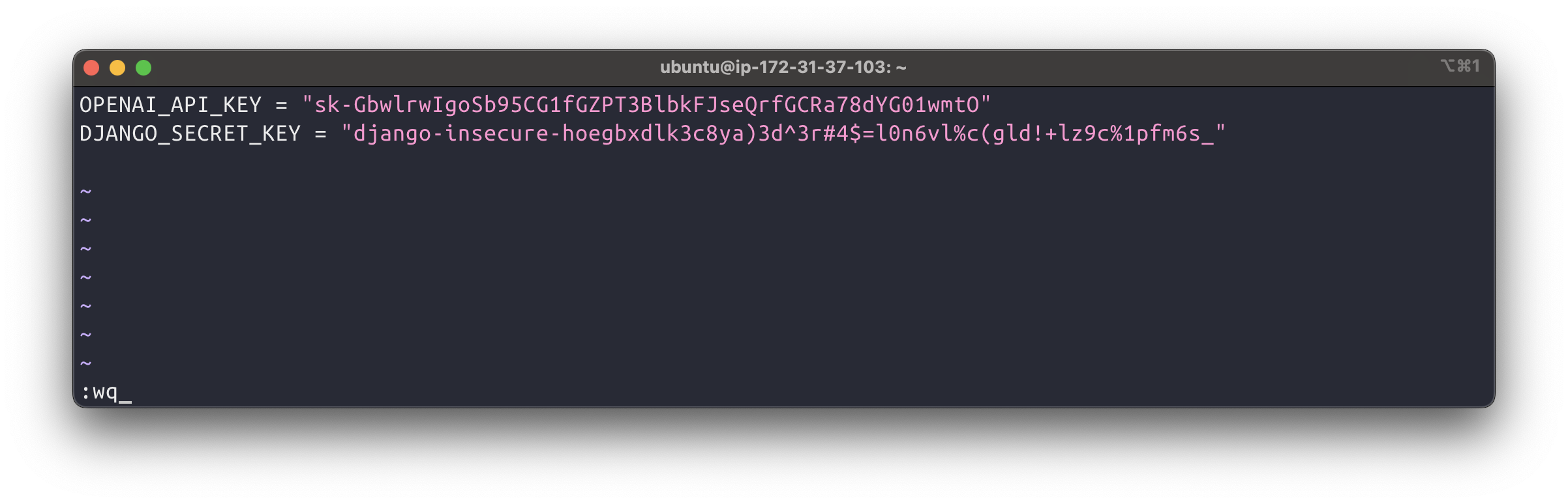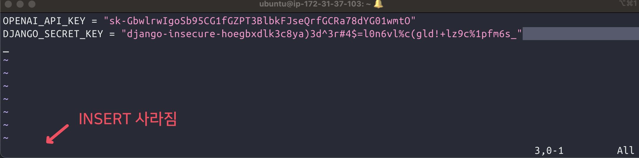 :wq 를 입력해서 저장 후 종료