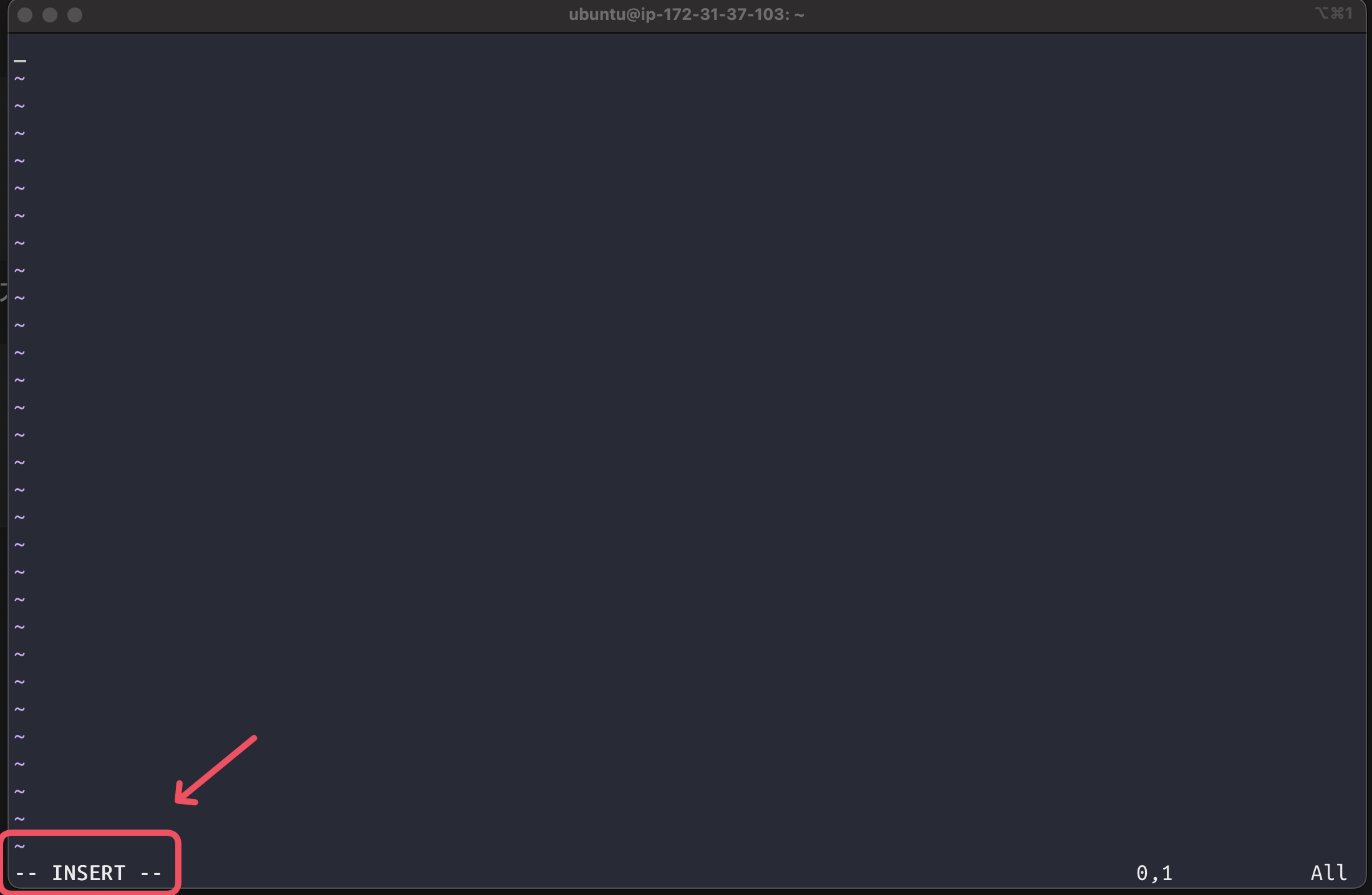 i 를 입력하면 INSERT 모드가 되고 이제 파일을 편집할 수 있음