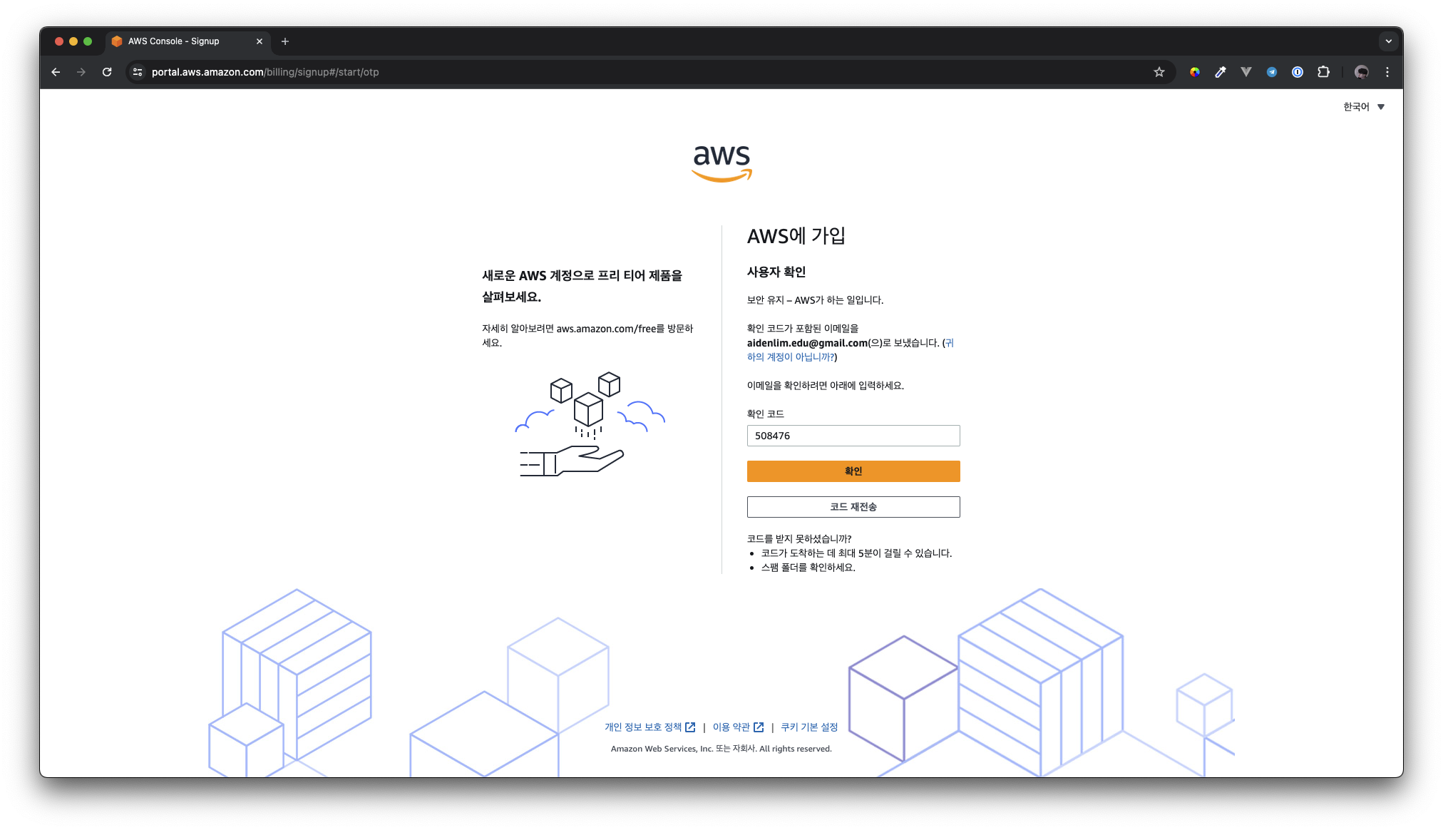 AWS 계정 생성 (https://aws.amazon.com/ko/)