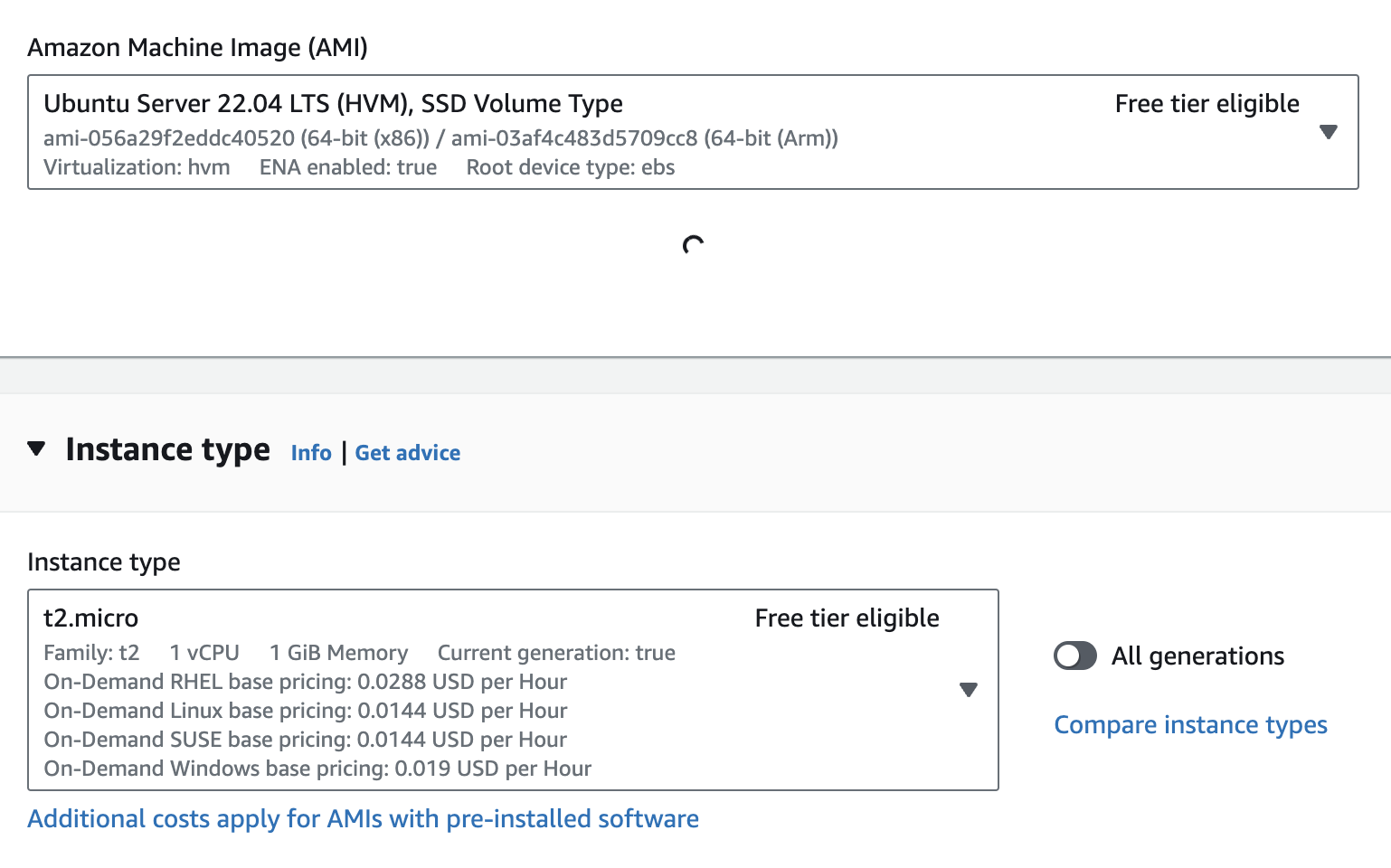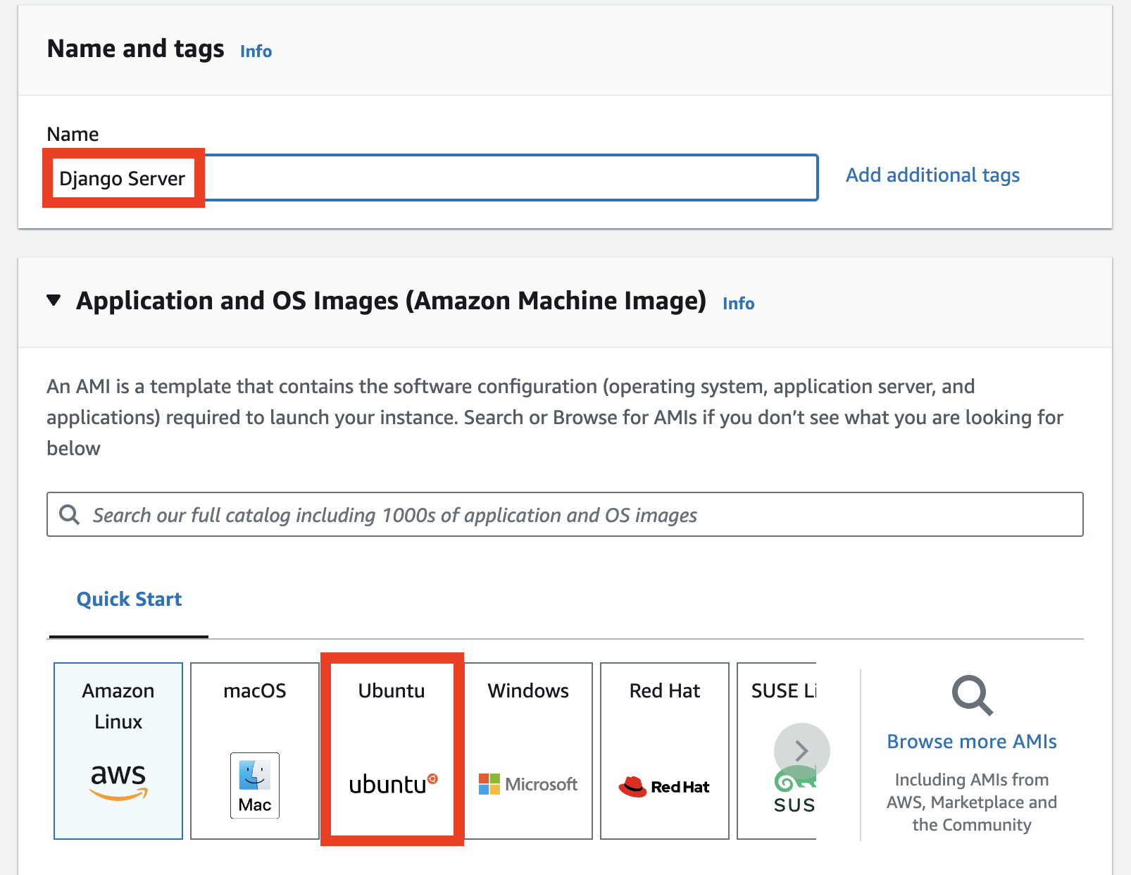 여기 이름 지정해주고, 원하는 사양을 커스텀할 수 있다.(IaaS방식) 우리가 사용할 서버는 Ubuntu 22.04, 타입은 t2.micro