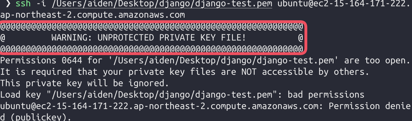만약 Unprotected Private Key File 경고가 뜬다면? 🤔